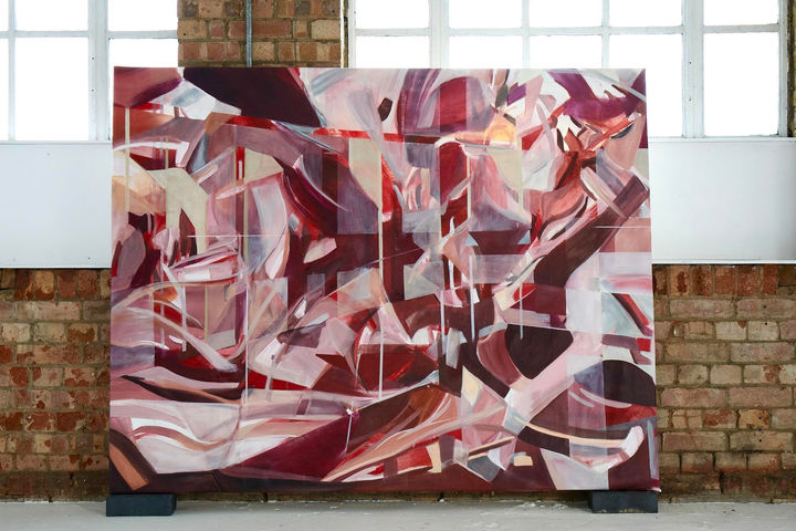 I am interested in the limitations of painting, the impossibility of expressing the complexity of the world onto a physical 2d plane. In this work architectural drawings and notations become abstracted into choroegraphed dances. Through the process of exploring technical drawings and gestural painting I create complex landscapes and ask where it is that freedom truly lies. Multiple images are layered as structures continuously emerge and become lost, through this confusion the paintings gain the energy of having no end, of continuing to question even after they are finished. As and architect and a dancer I want to understand the place where logic, structure, freedom and expression meet because for me this is a mystical place where unknown things come into being.